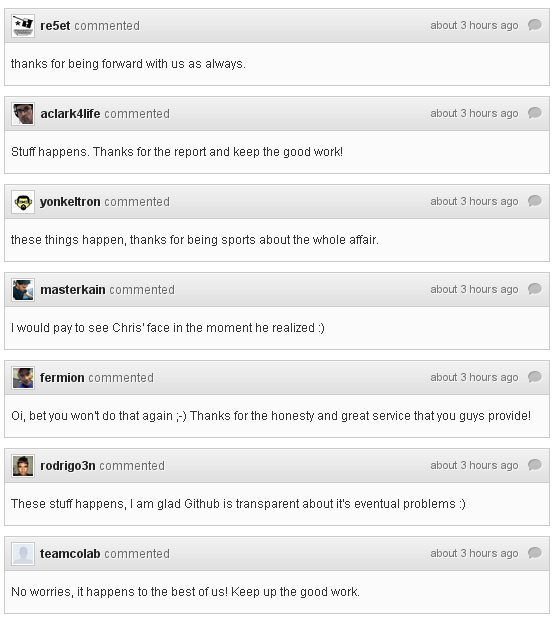 This past Sunday (11/14/2010) GitHub experienced once such accidental outages. GitHub, for those who are not aware, is a community based collaborative version control system used by most open source, startup and web 2.0 projects. Amongst it customers, it lists Facebook, Twitter, Digg, Yahoo and open source projects like jQuery, Ruby On Rails, CakePHP, Hibernate and many more. So given all the marquee names, conceivably, there would have been a lot of noise created when there was a unplanned service outage. Blogs, Twitter Stream and sundry would have been raging with upset users/customers. But what happened was exactly the opposite. Customers came out in numbers and expressed empathy with GitHub. What could have caused this noble behavior?